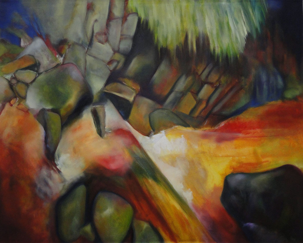 I’ve left my reclusive hideaway in the midlands but I still have several landscape-themed paintings, like the one above, that need more work. It remains to be seen whether I’ll ever finish them. It’s surprisingly difficult to change location and keep momentum.