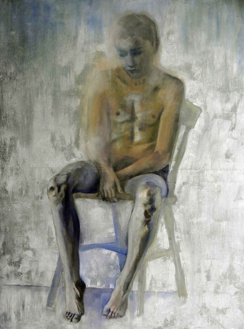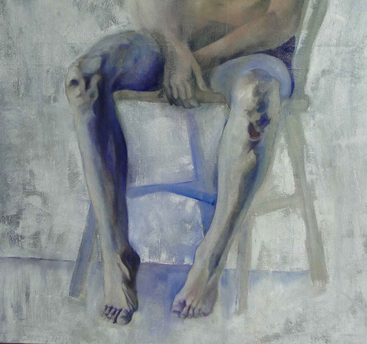 The painting above is a failed portrait. I haven’t totally given up on it, but nor have I done any real work on it in several years. It was actually varnished and hung in an exhibition, and then I gave it away because it was too flawed to sell. And then I stole it back about a year later, because I was too embarrassed to leave it as it was. I literally took it off someone’s wall and carried it home. I stripped off the varnish and rubbed out the parts that were most offensive and now it’s been sitting my studio for months while I try to figure out how to fix it. The only part I really like are the legs. I’m really proud of those knees. I don’t know why. Do they look like knees? No. They do not. But there’s something satisfying about the colours, the shadows, the general knobblyness. They’re mighty knees. I had an excellent model, a bony adolescent boy, mid growth-spurt. He recently had to go to a physiotherapist because of trouble with those marvellous knees. It turned out he had extremely tight hamstrings because his legs were growing faster than his muscles. Literally, his bones were growing too fast for his flesh to catch up.