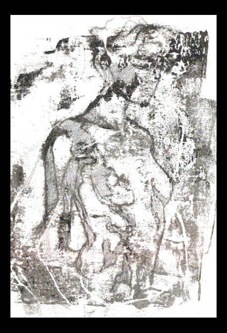 Female figure study. Monoprint + white pencil. Approx 5×8"