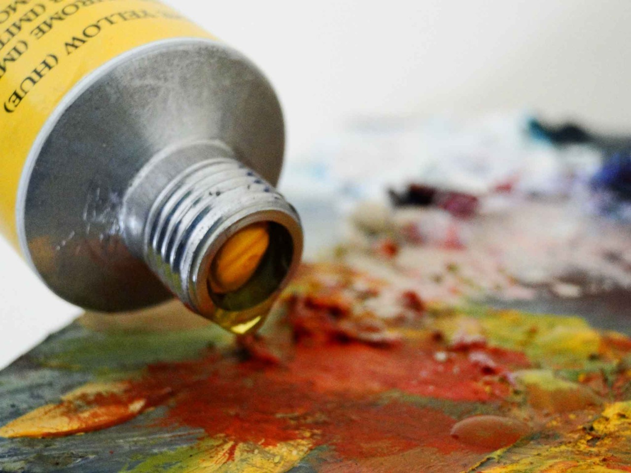 Opening a pristine tube of Chrome Yellow oil paint. I love when a fresh tube oozes a little binding agent/oil.
