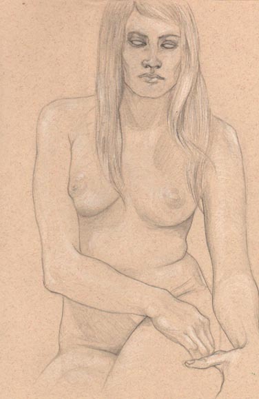 Female figure study. Graphite + white pencil on paper.