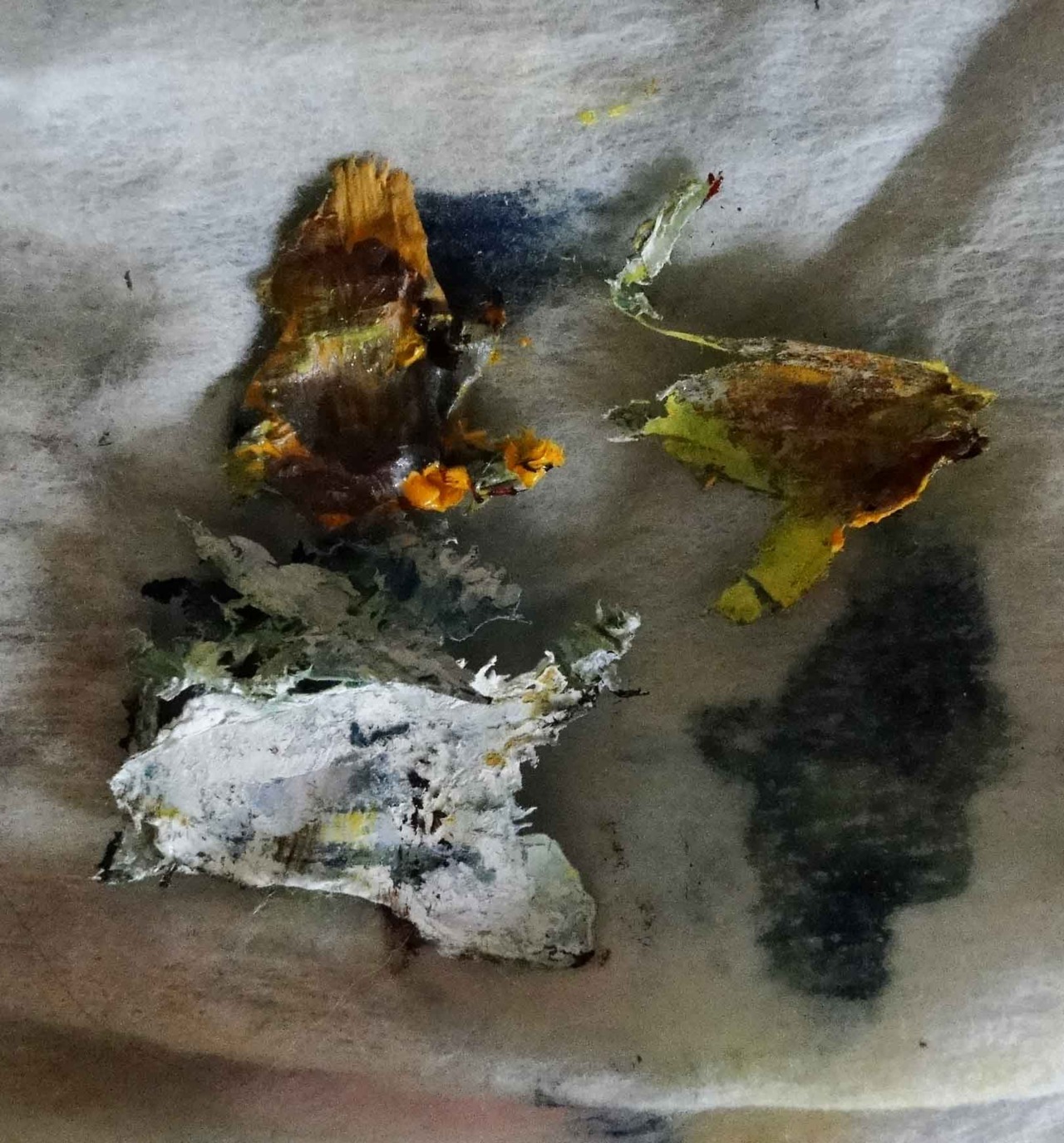 (Old stale paint scraped off a palette and smeared on a white cloth. Sony DSC-HX1.)