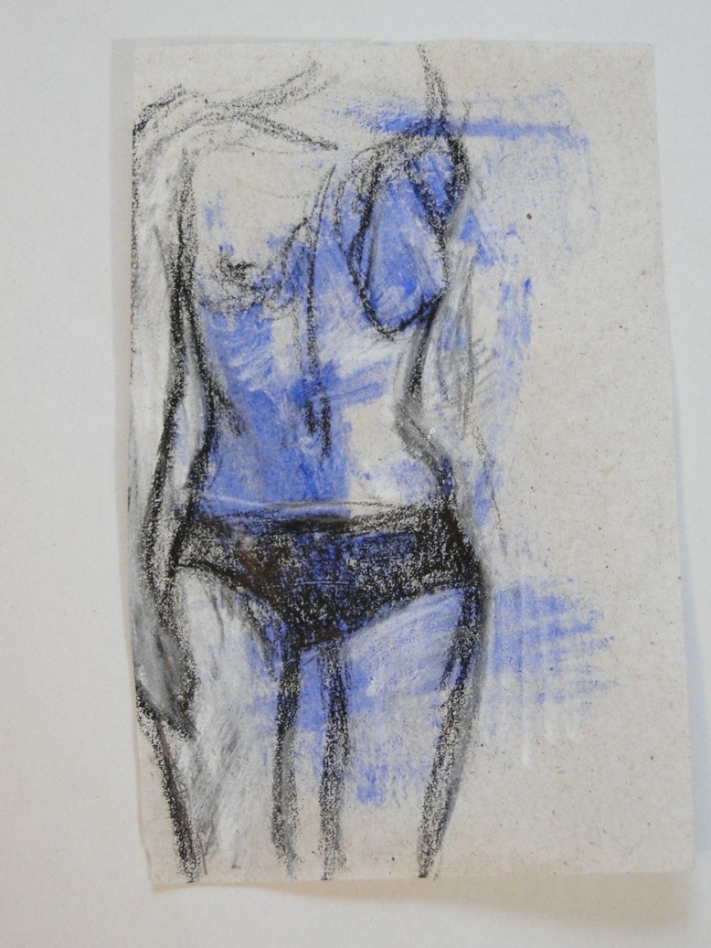 1. tiny figure study, blue mascara and chinagraph pencil (approx 3 inches)