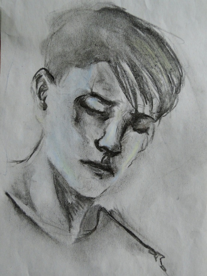 2. face study, blue and yellow chalk & charcoal