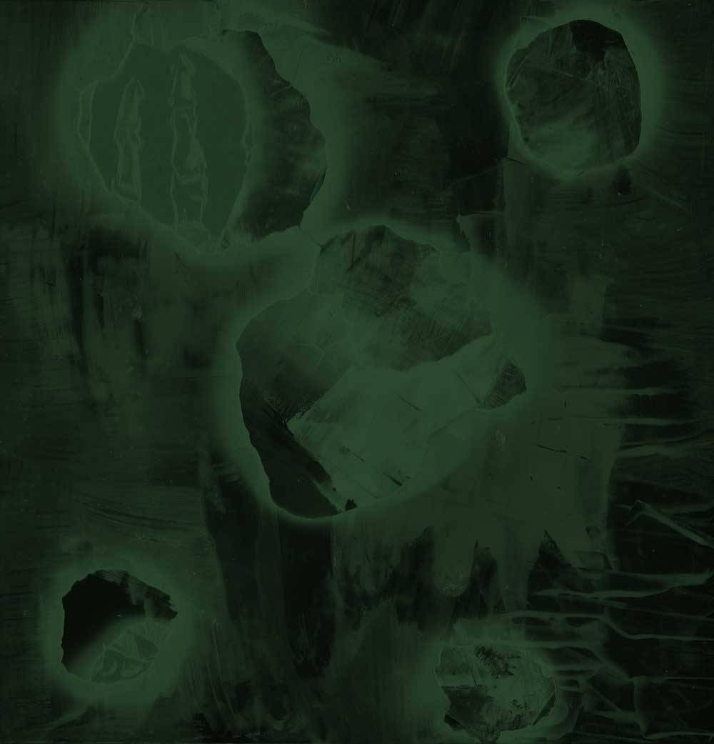 digital manipulation of a collage made from a linocut print and several burnt oil paintings made on photo paper.
