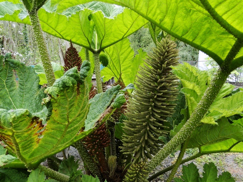 When the End Times do come, I’m going to stay here and survive on peas. Or maybe I’ll try to eat that giant hairy thing, whatever it is. I think it’s a form of giant rhubarb that happens to sound like a venereal disease, but then most things do in Latin. (Gunnera.)