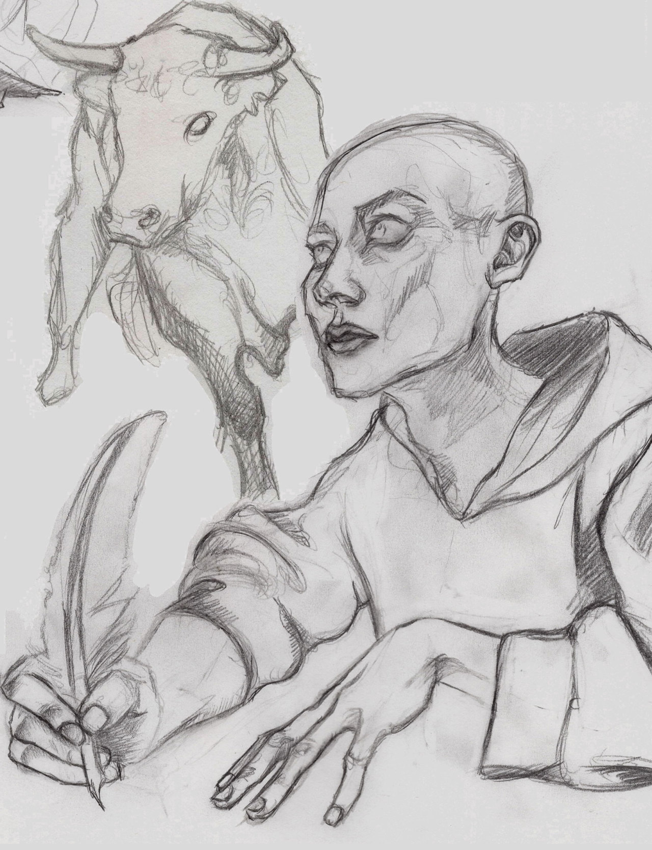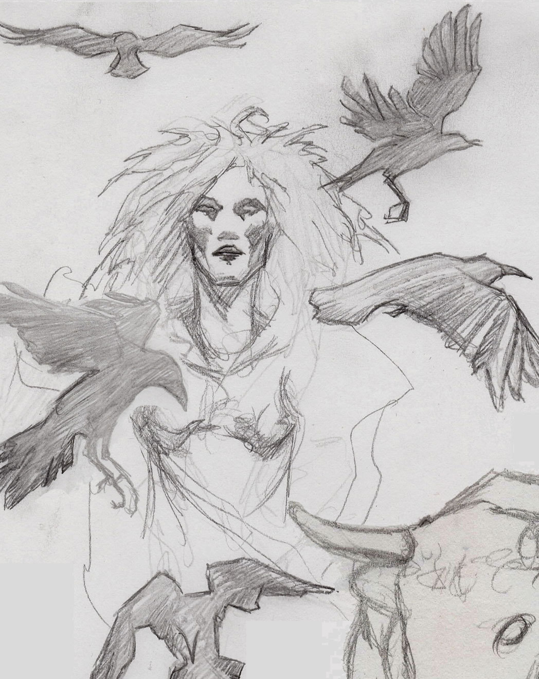 Preparatory sketches/composites for a watercolour & ink drawing based on the legend of the Táin Bó Cúailnge.