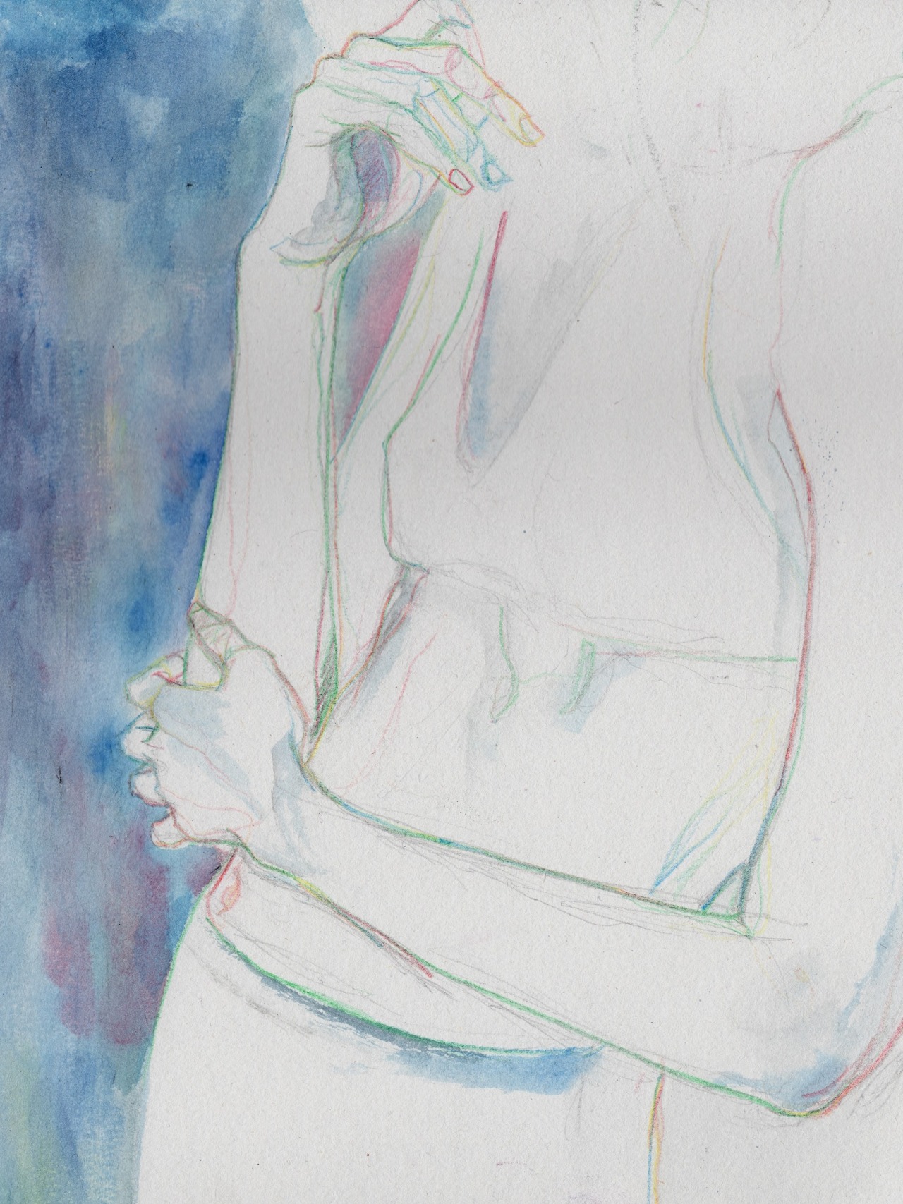 Figure study, coloured pencil & watercolour on card (A4 approx)