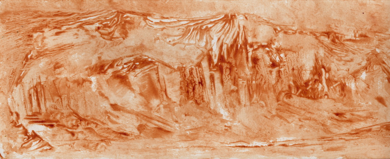 landscape study, painted using discarded dye & a palette knife