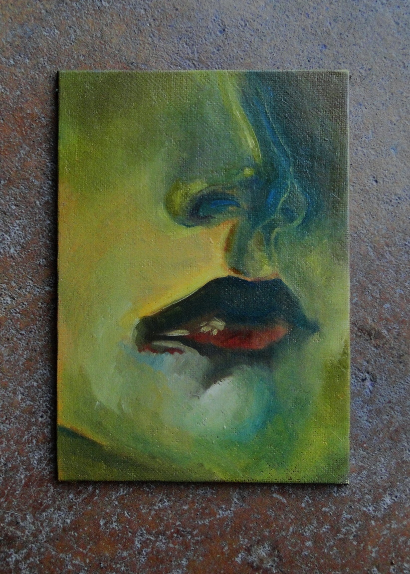 A little face study. oil on board, 5×7″ approx.