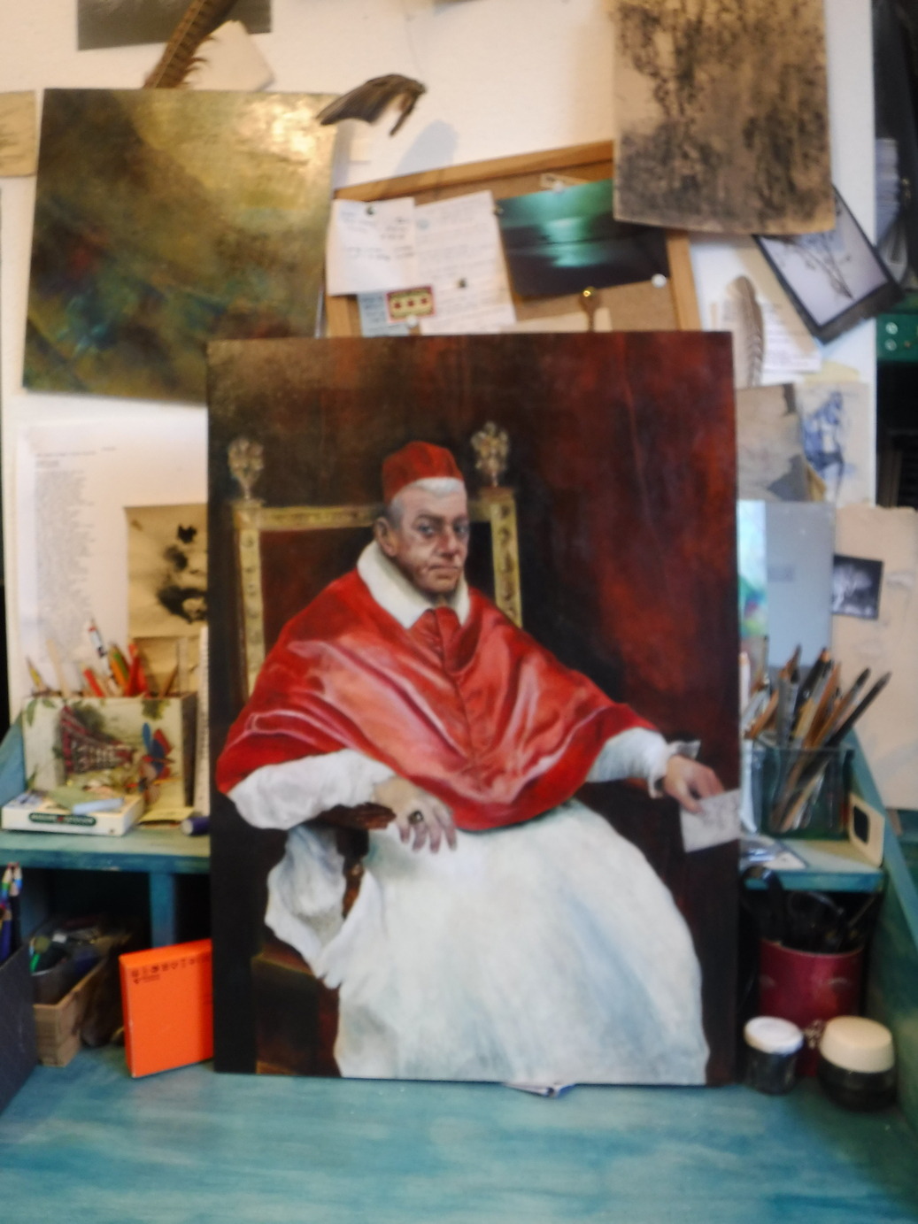 A blurry pic of an unfinished portrait of my uncle after Portrait of Pope Innocent X by