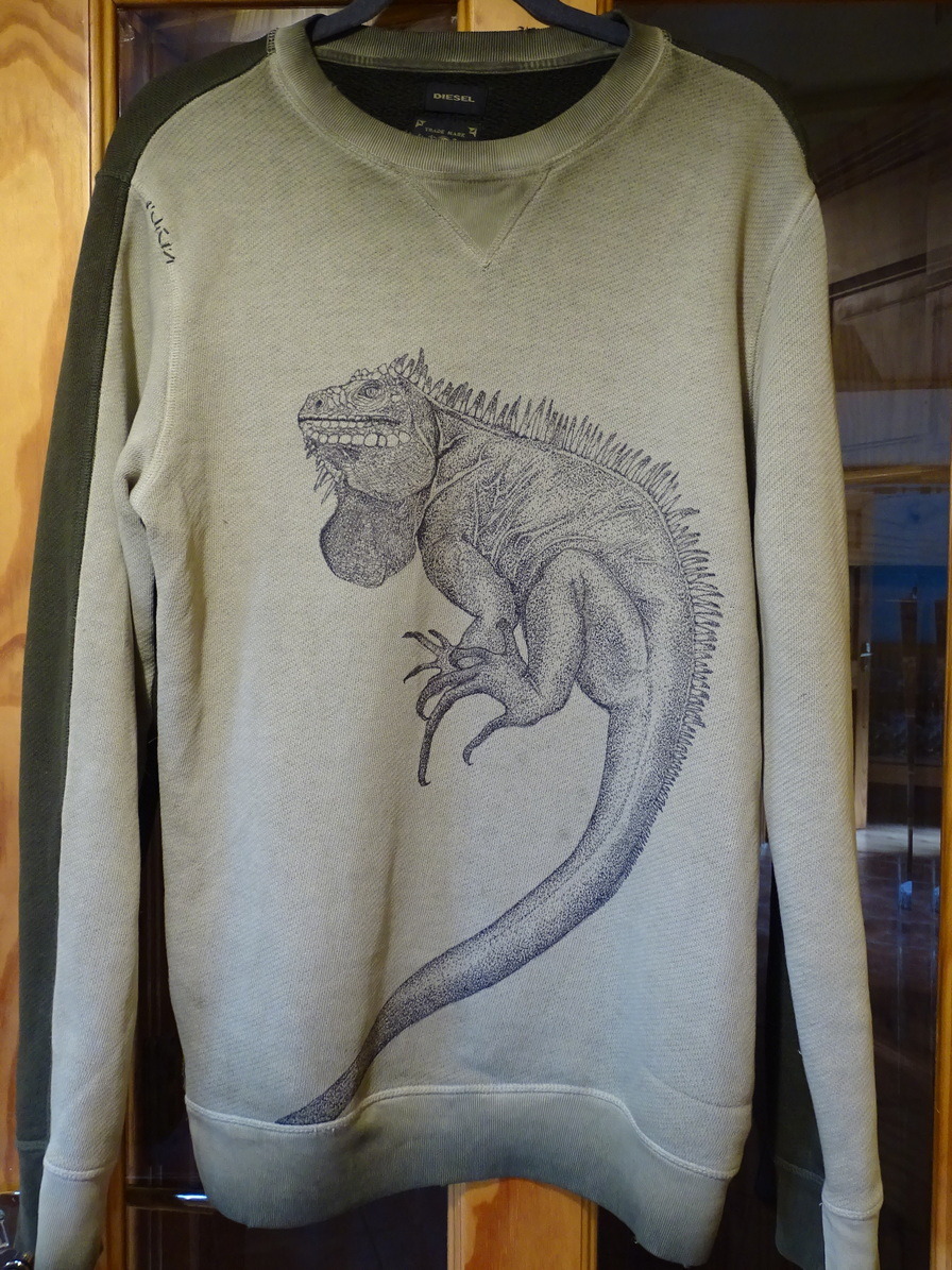i customised a sweatshirt with a drawing of a lesser Antillean iguana. 🦎
