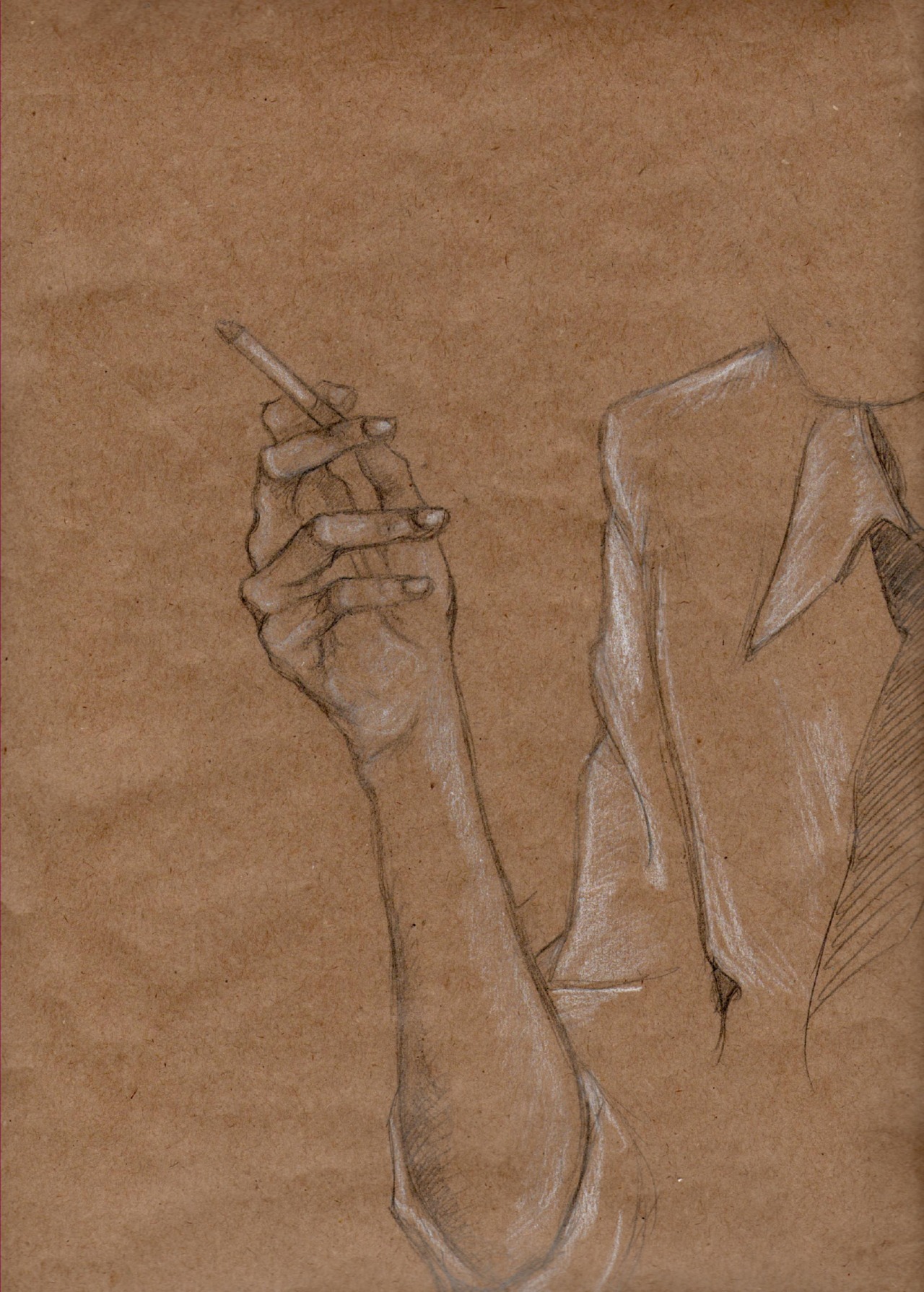 Graphite and white pencil on brown paper.