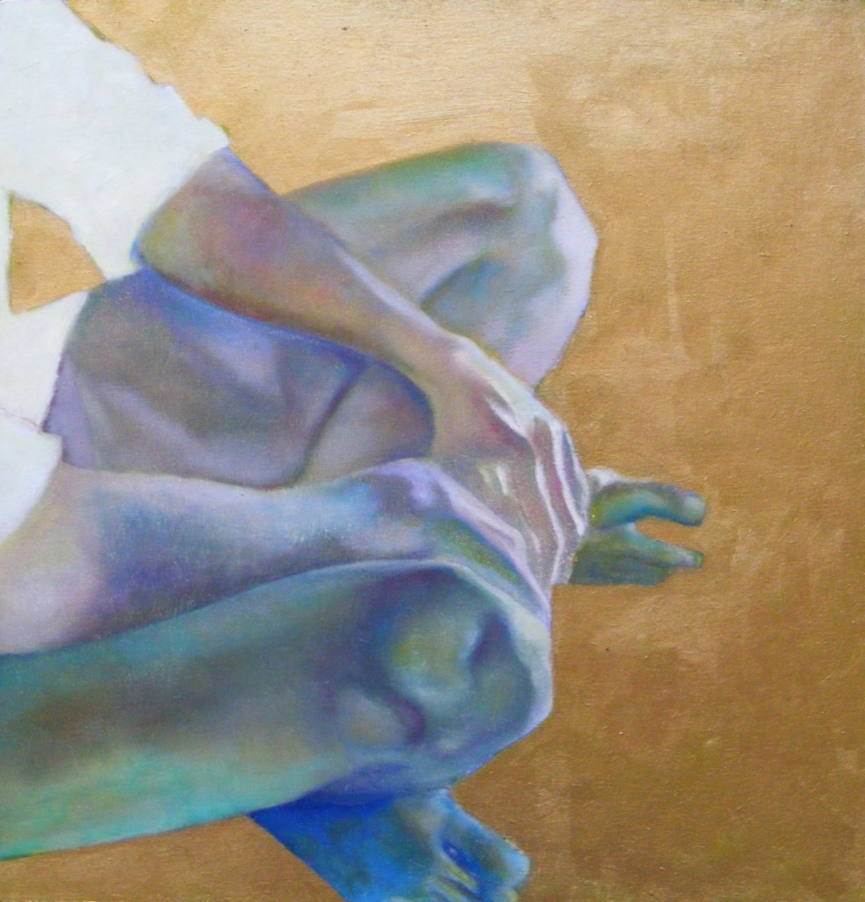 A work in progress. Thin layer of oils over acrylic & primer on paper. I used plastic to get a textured effect in the background.