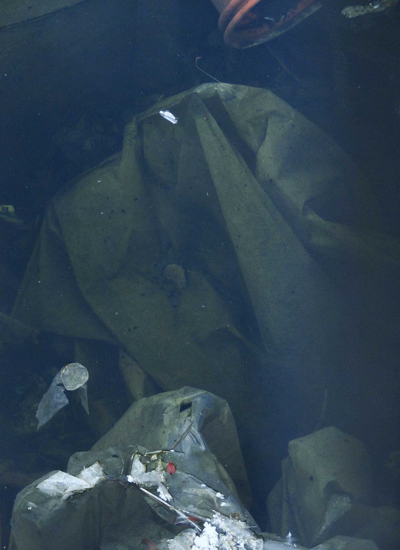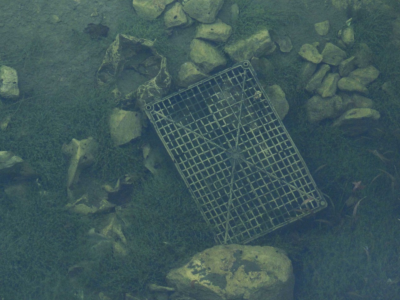 To be clear, it is actually some detritus lurking just beneath the surface of filthy, man-made lake.