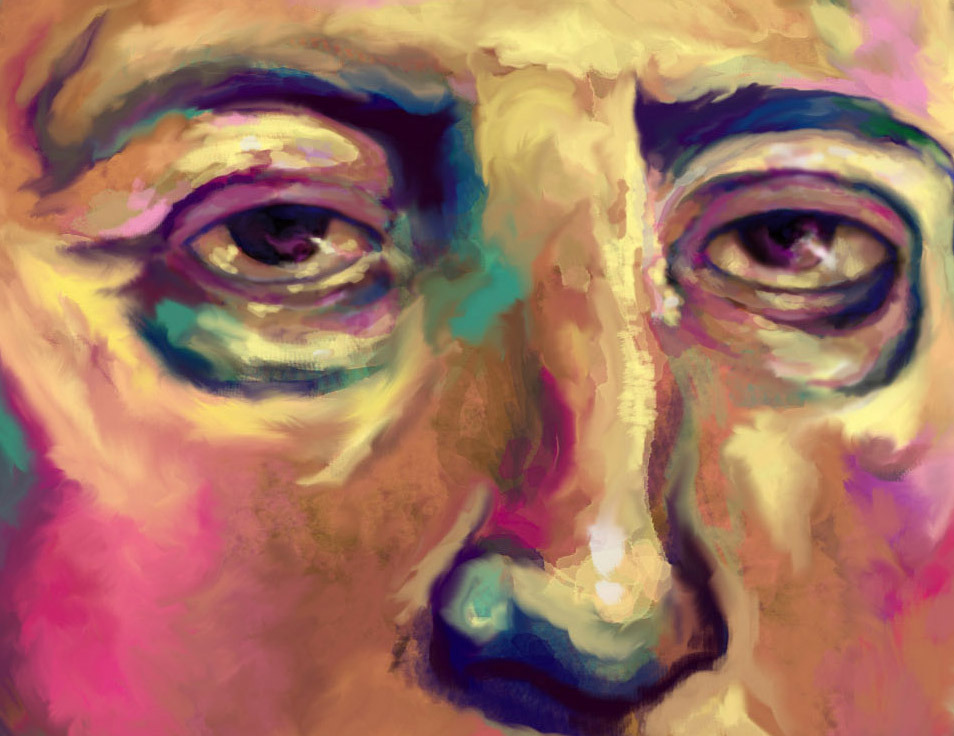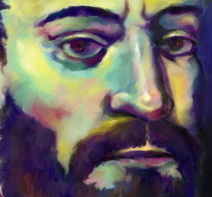 No known authentic portrait of Columbus exists, so I’ve referenced a posthumous effort by Ghirlandaio for this. I like the look of this small, petulant, round-headed man, although contemporary reports describe him as a vast, 6-foot curiosity in an age of short men.