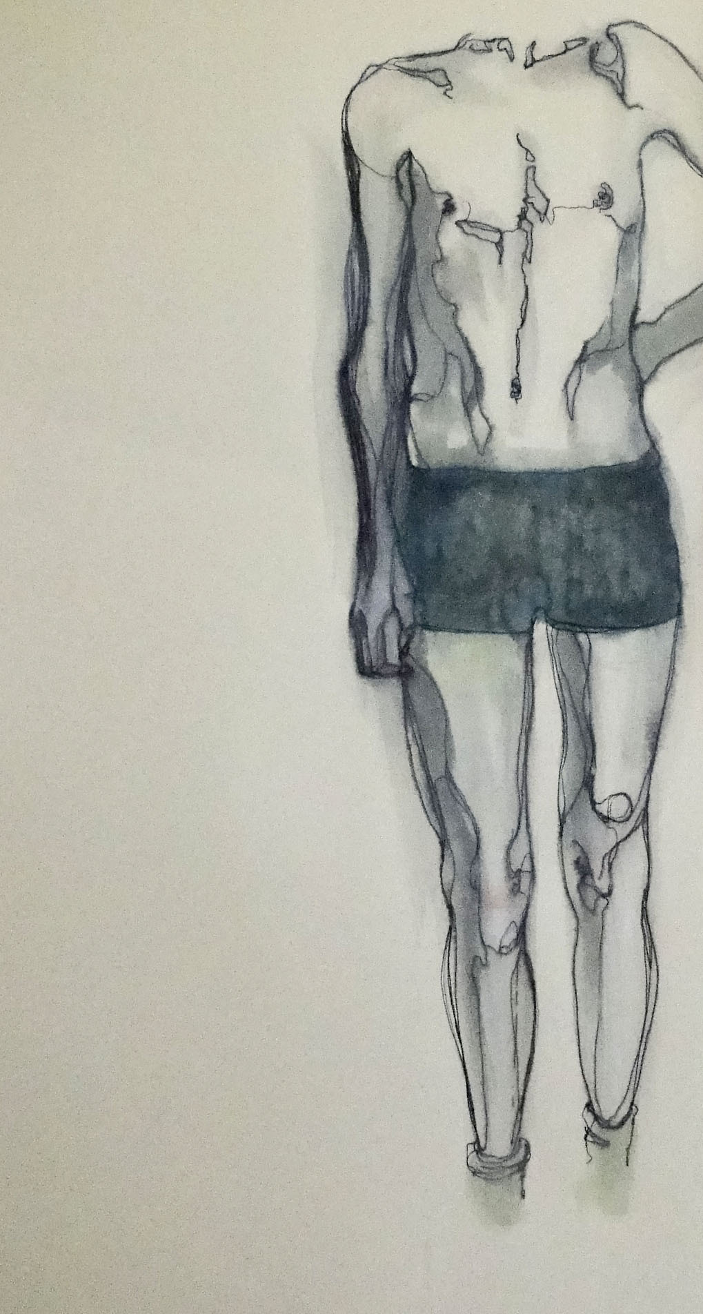 I have this strange urge to paper the walls of the studio with bodies. I picture the room teeming with figures, looming over the space, a bit like murals in some ancient tomb, except for some reason they’re all faceless and have no feet. I might be working on a potential installation that expresses something poignant about the human condition. Or I might just be drawing myself some company because I’m lonely.