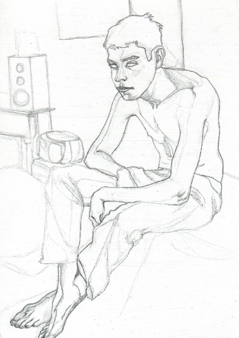 Figure drawings. (I tend to draw in nearly invisible 2H pencil, so I’ve upped the contrast in Photoshop.)