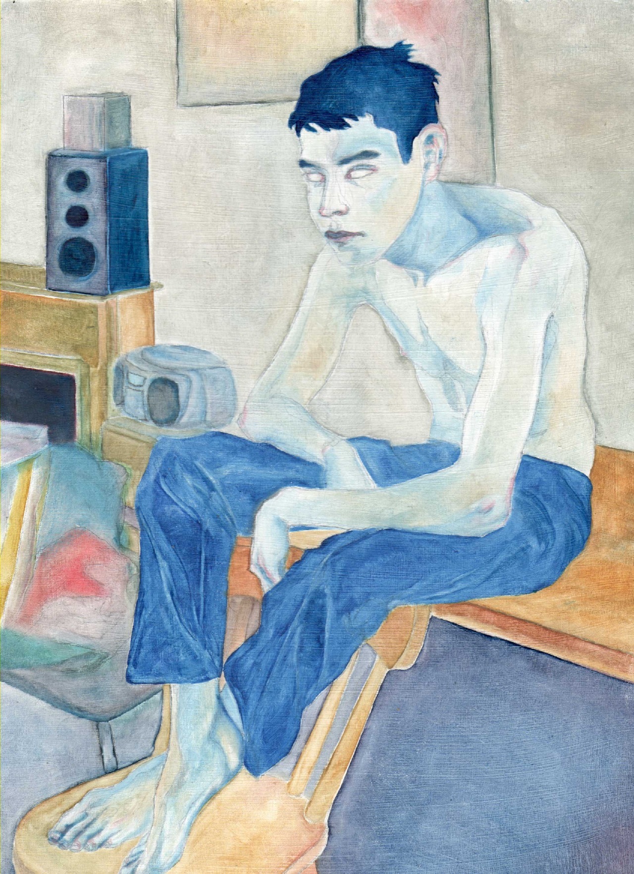 I’ve been trying to find a new way to deal with bodies. This was initially a lot smoother, more carefully rendered. Then I basically started torturing it with a palette knife and now up close it looks like the whole surface of the skin is bristling with static.