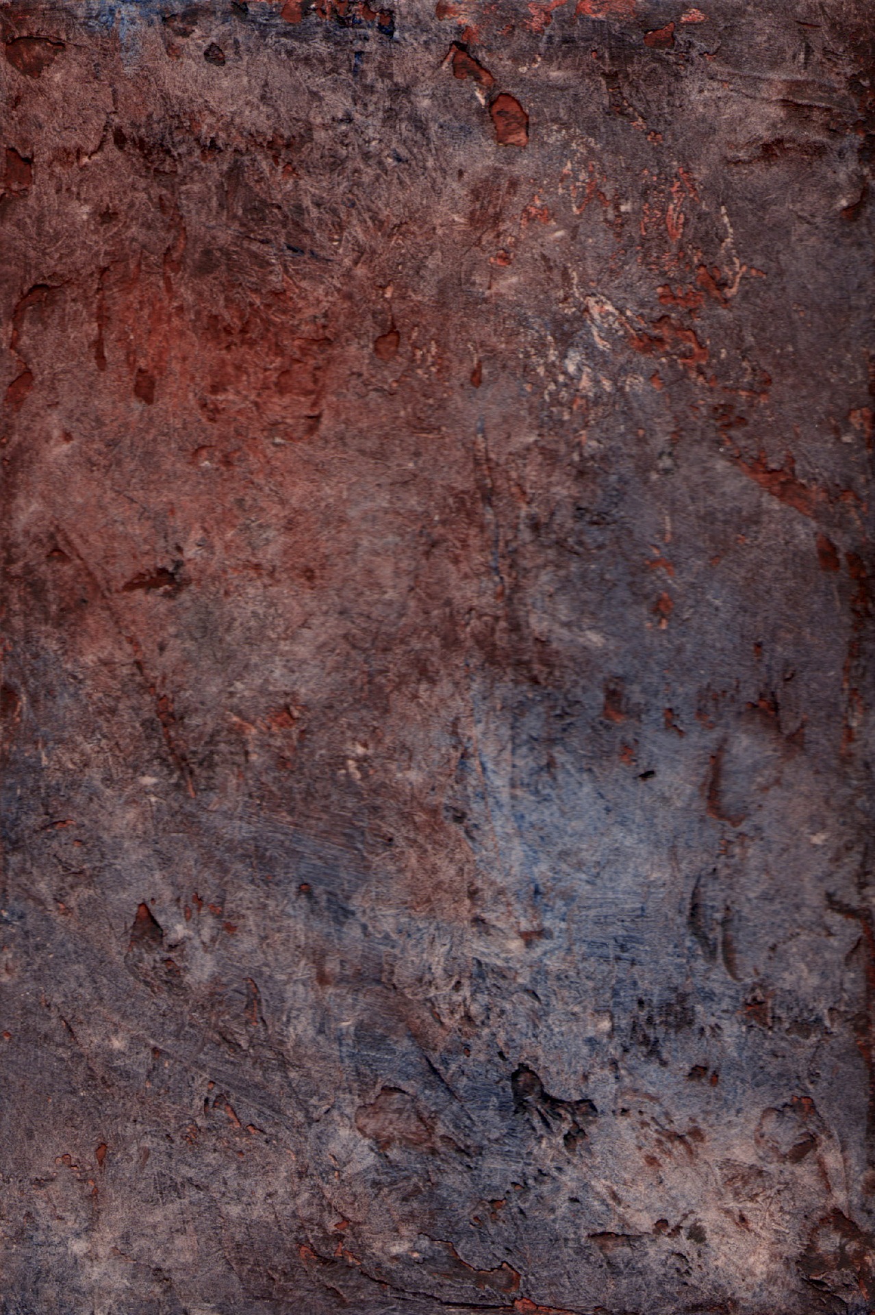 Grit and gesso and acrylic and PVA and water-based ink and god-knows-what-else on card. Used for monoprinting.