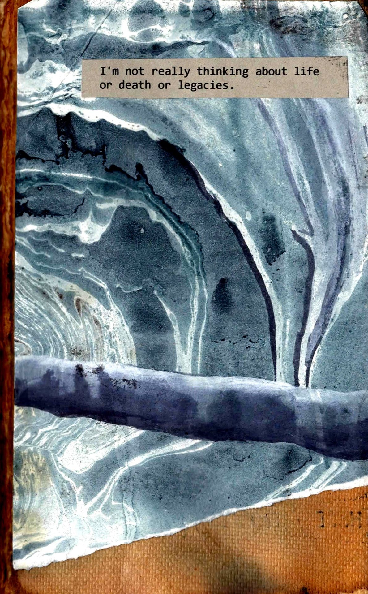 Mixed media (ink, watercolour, acrylic, graphite, colour pencils, charcoal, monoprint and collage). Art book/comic.
