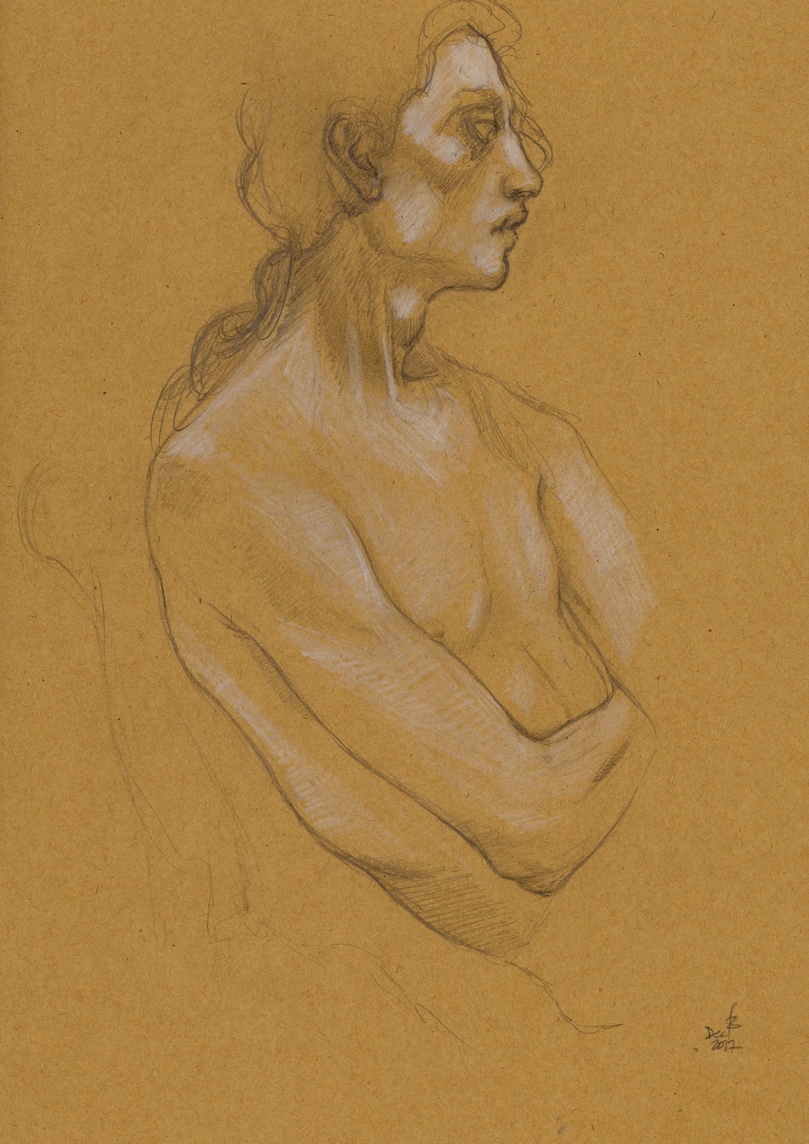 Figure study, coloured pencil & watercolour on board (2 of 4)