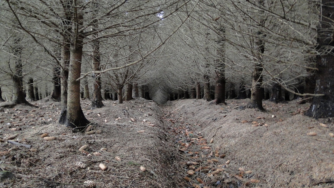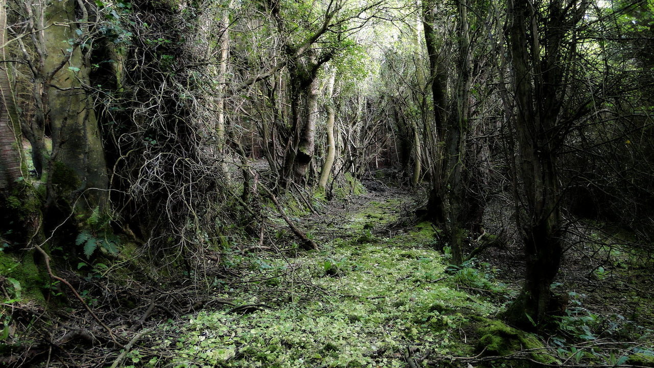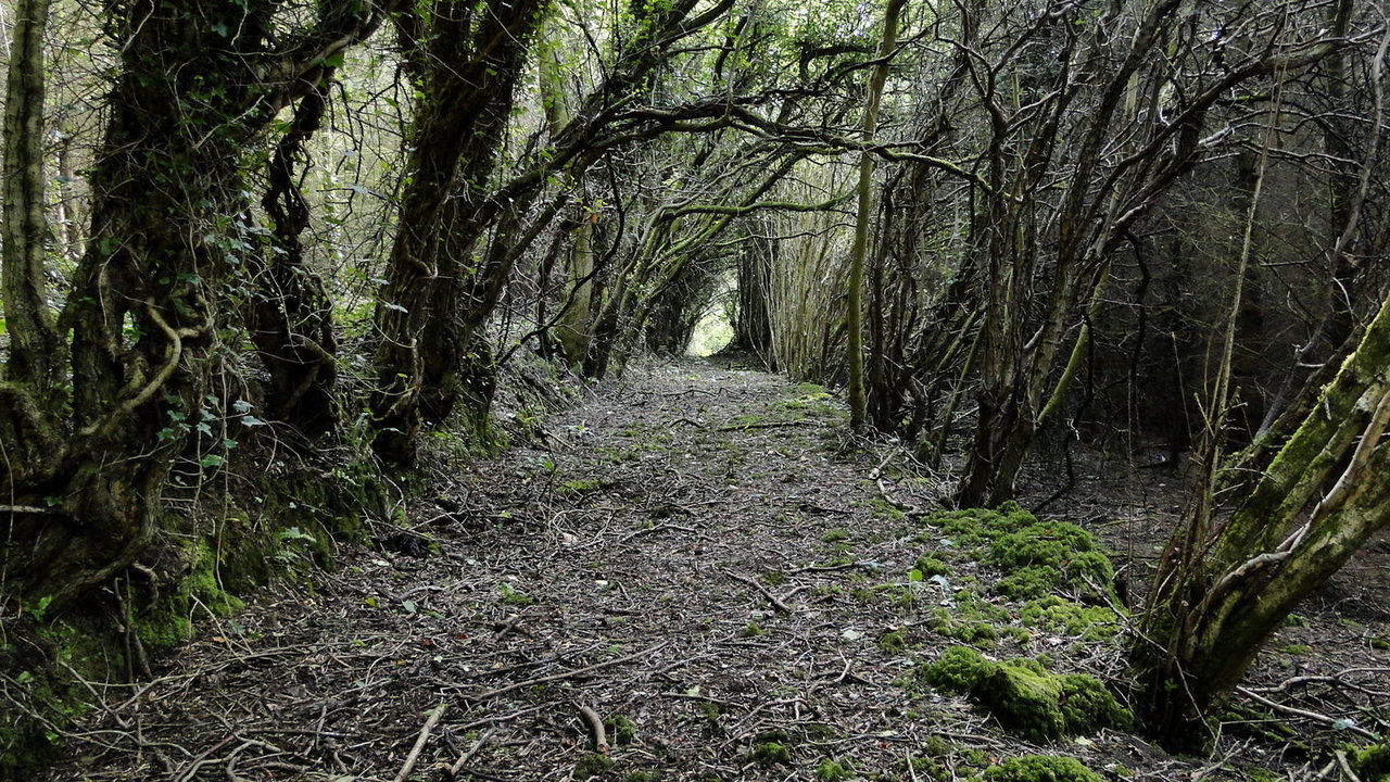 the remains of a disused road through woodland