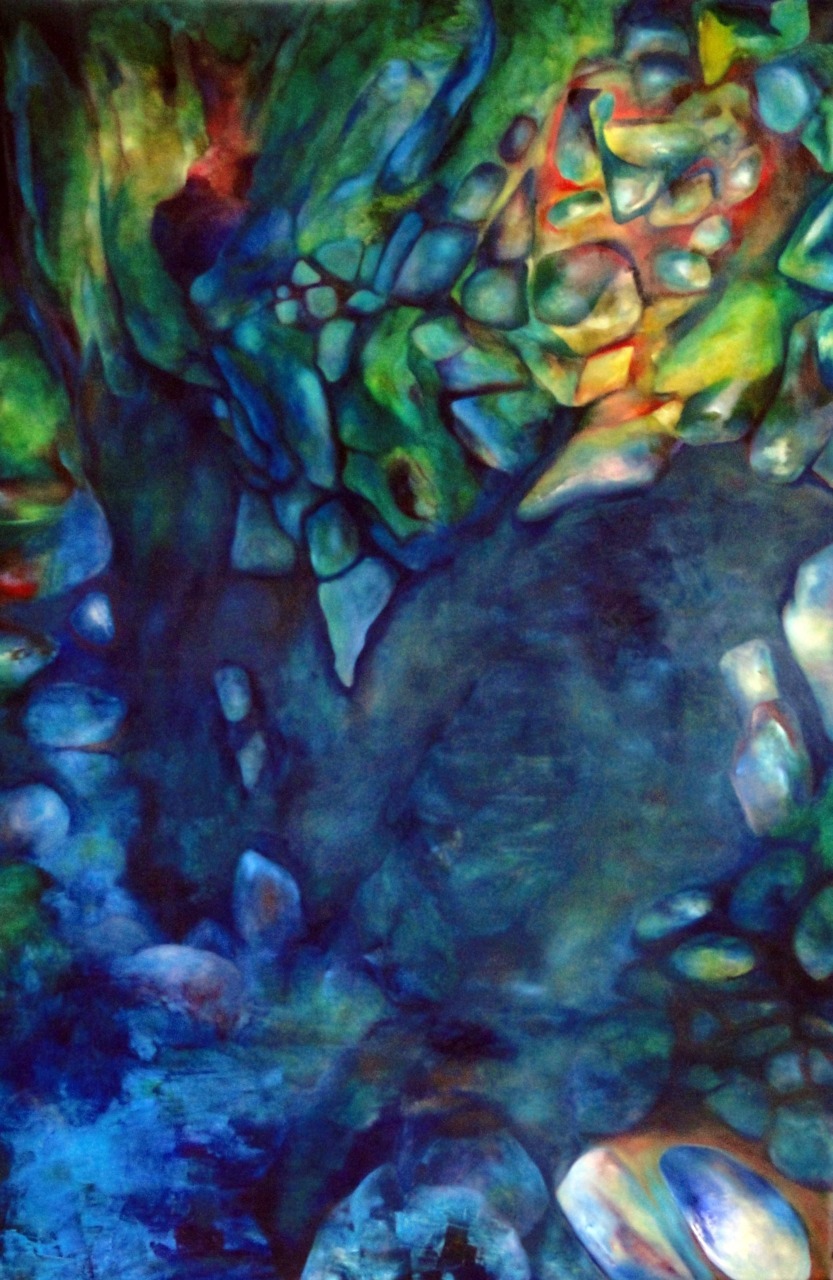 So, I stayed up too late one night trying to fix this painting and ended up slathering most of it in a thin layer of Prussian blue. The result struck me with the force of an epiphany and I even wrote a note to myself that read “WHEN IN DOUBT BLUE” and pinned it up in the studio with a flourish. Next day I came back in and saw this. Hahaha what the hell have I been doing?
