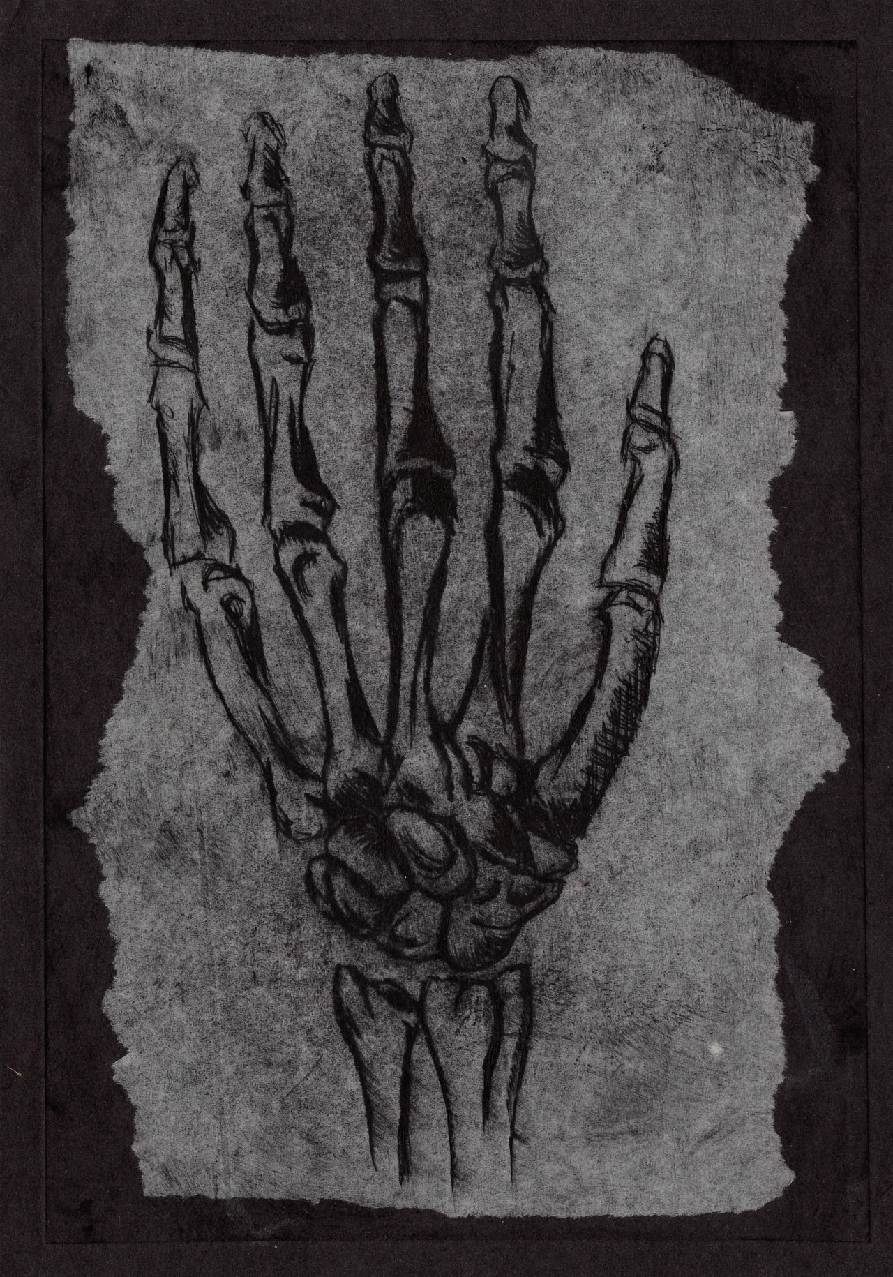 Untitled, mixed media (mostly oil-based ink) on card. (20x18cm approx).