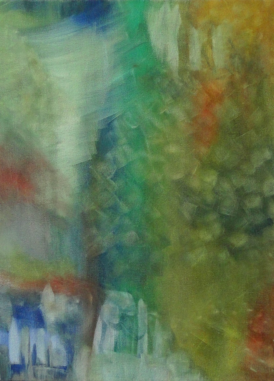 I suppose it’s abstract, but that seems the wrong word by now because I know its forms so well that revisiting it feels like walking down a familiar street. It seems obvious where everything is in relation to each other. Abstraction usually feels vague, that’s its appeal; shapes morph and colours bleed and planes shift. This one feels more like a lovely, horrible, old misshapen teddybear: to anyone else, it’s probably hard to tell what it’s meant to be, but I’ve spent so much time with it I think it’s perfectly clear. It’s meant to be what it is.