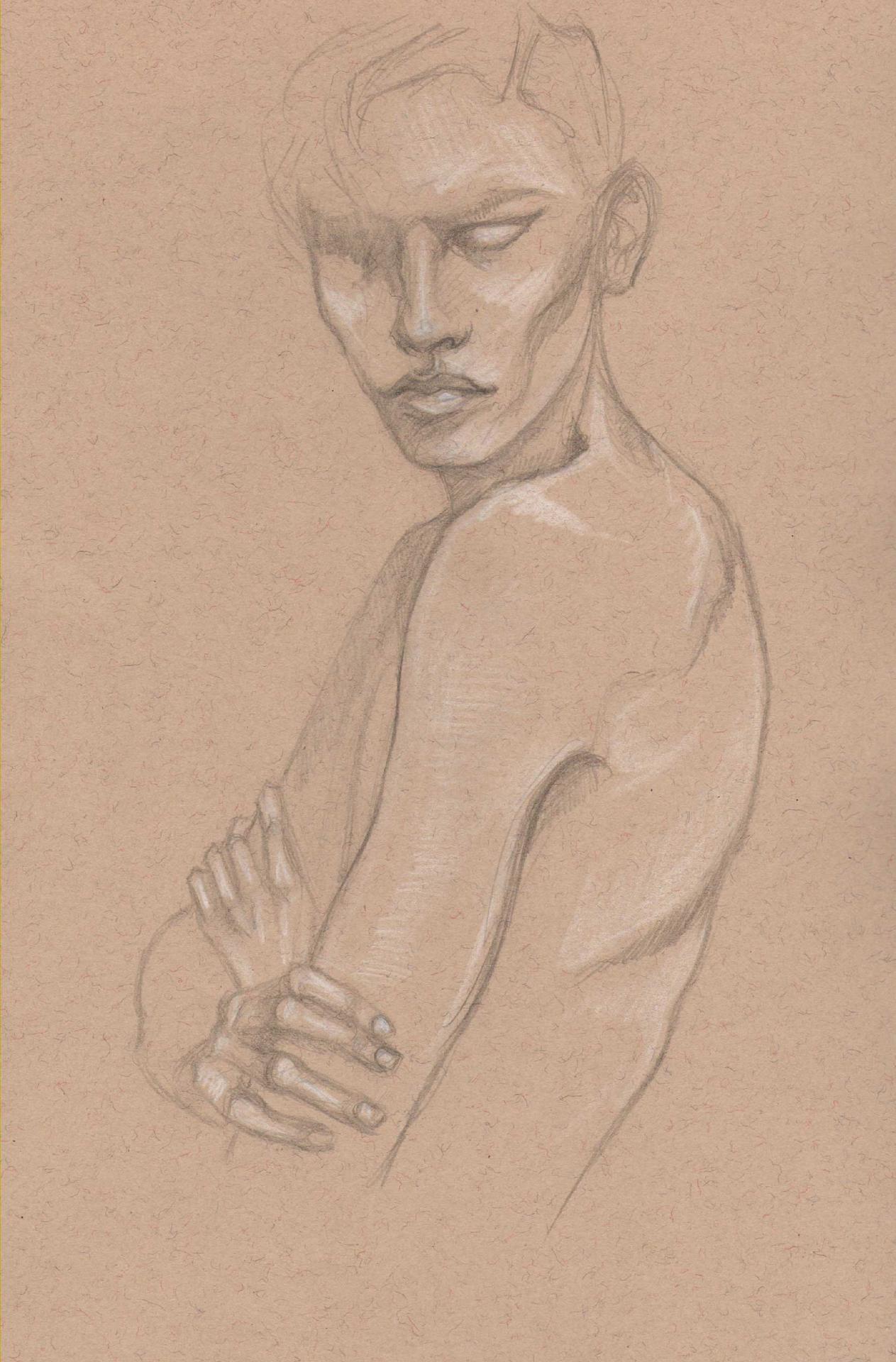 Androgynous figures from my sketchbook. Graphite & white pencil.