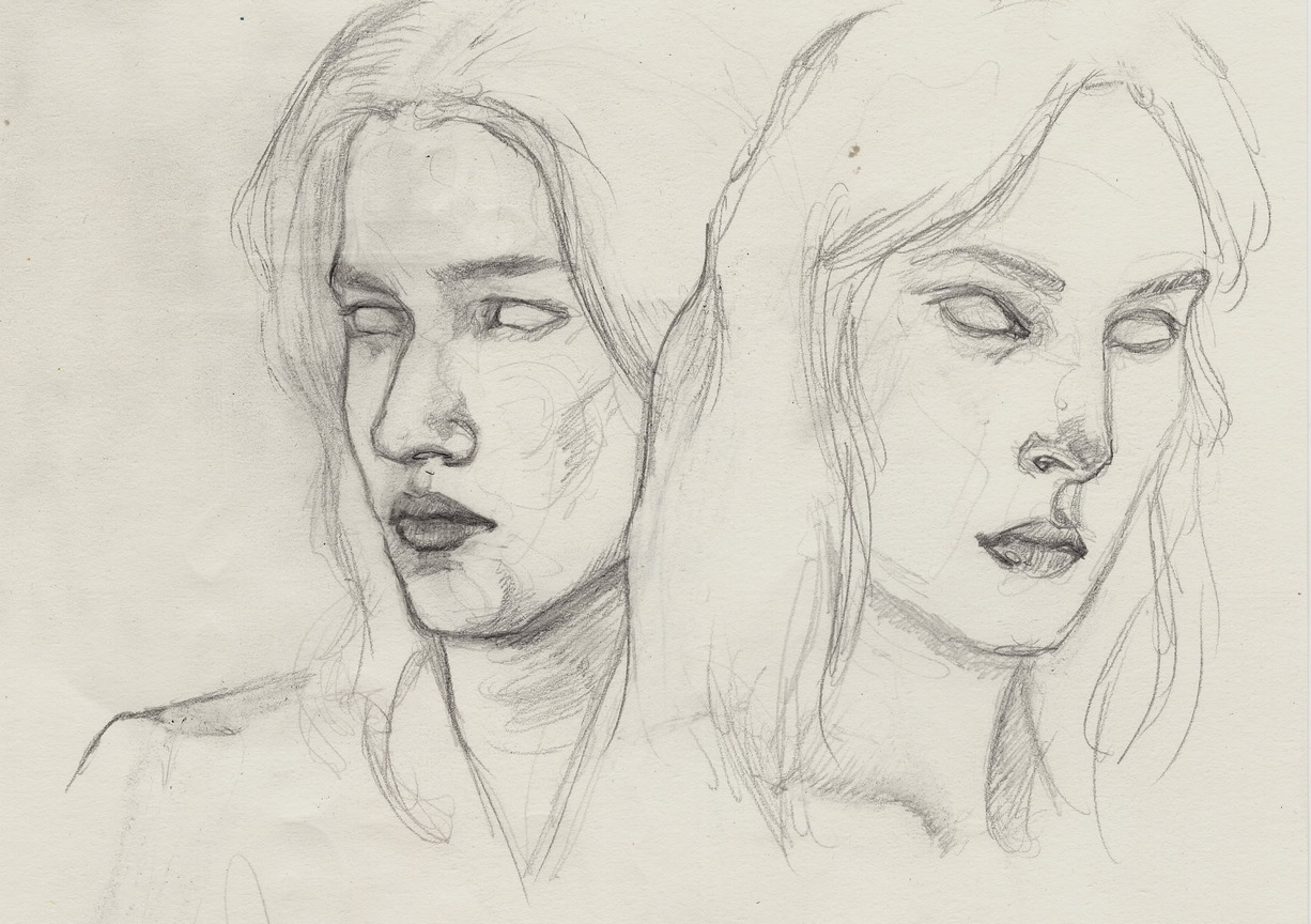 quick figure studies in pencil for a series of paintings.