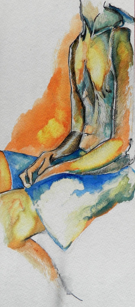 Correction 1 (Double Portrait) and Correction 2: Both pieces watercolour/mixed media on paper, 16×20".