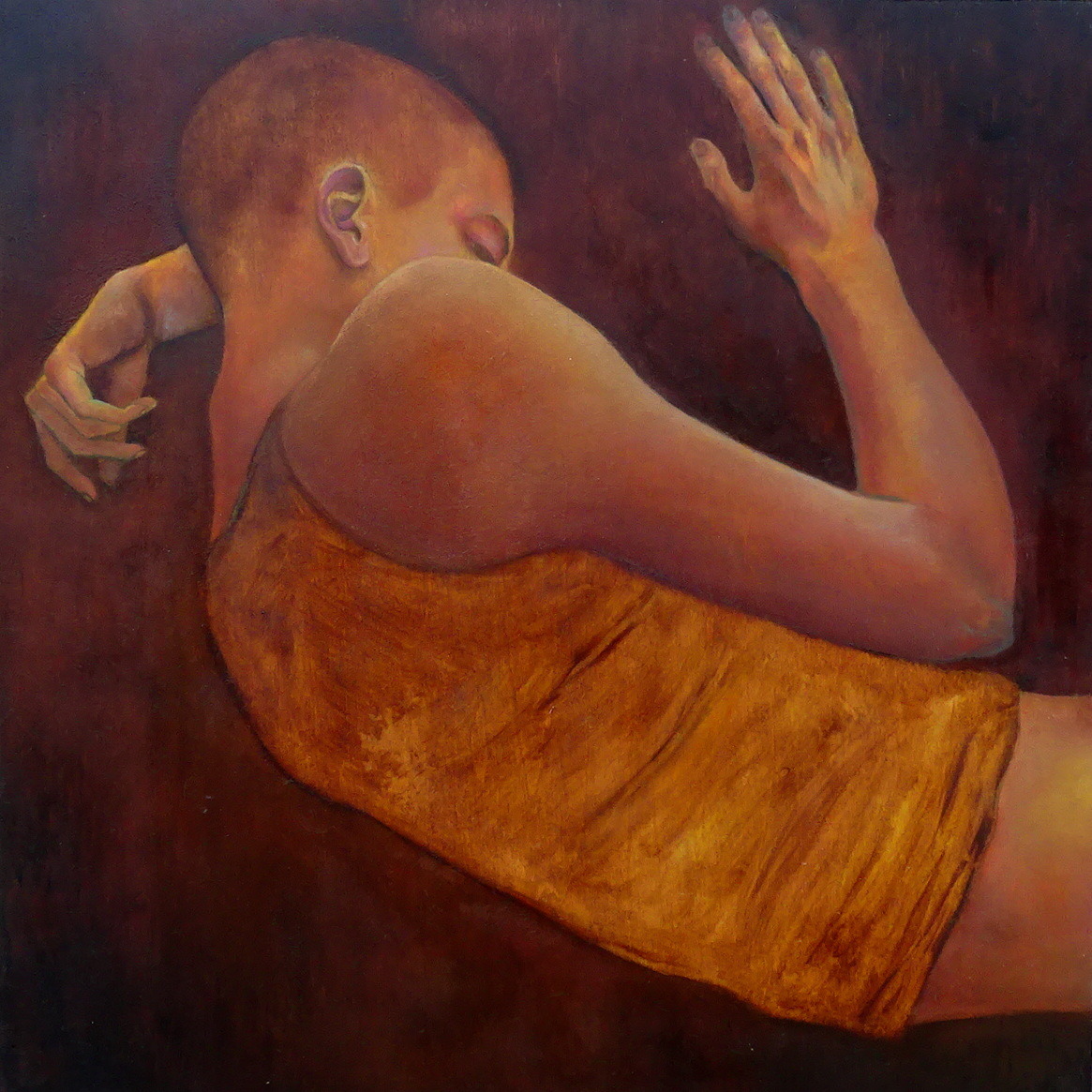 I’ve been reworking some old abstract paintings where I’d messed around with gesso and impasto acrylic trying to generate texture using knives, clingfilm, anything that came to hand. A layer of gold metallic acrylic paint acts like trapped light so that later layers of darker oil paint are infused with warmth. These upper layers of burnt umber and sienna tones can be scraped back to reveal a kind of internal glow, like heat trapped in the earth.